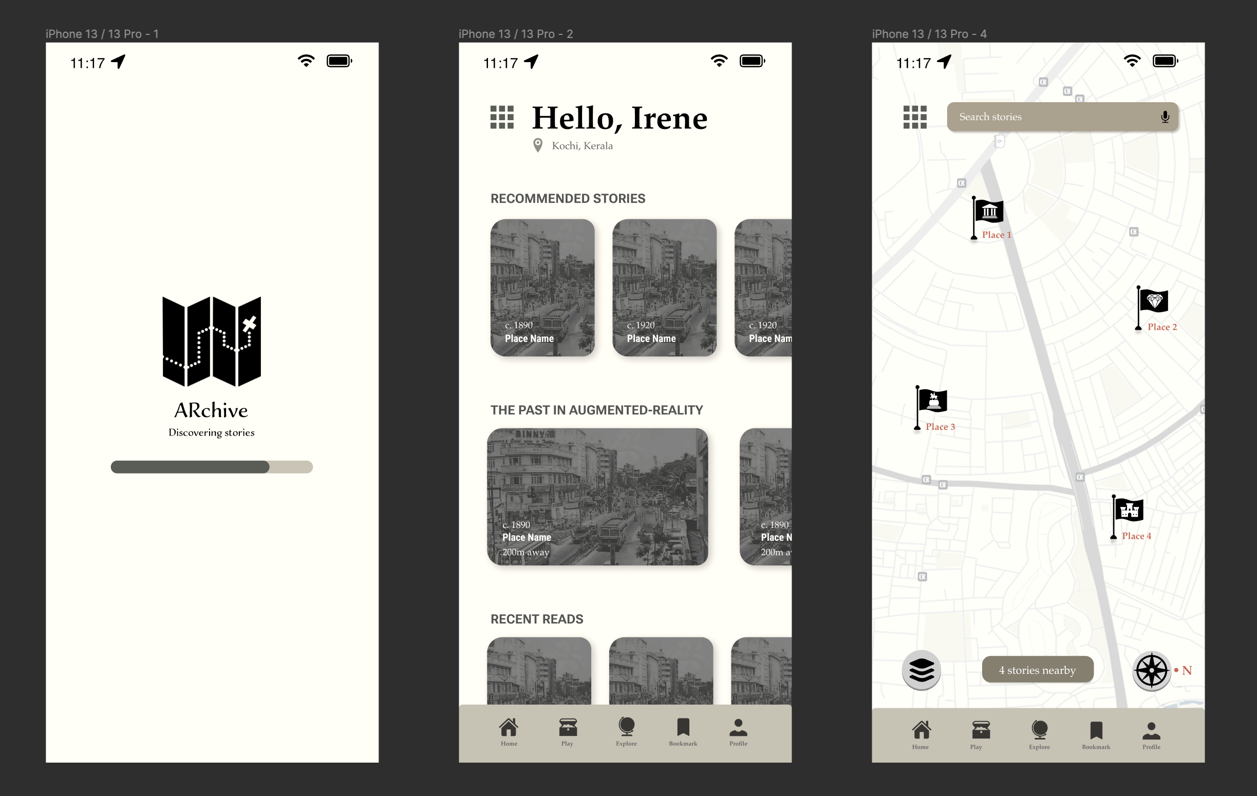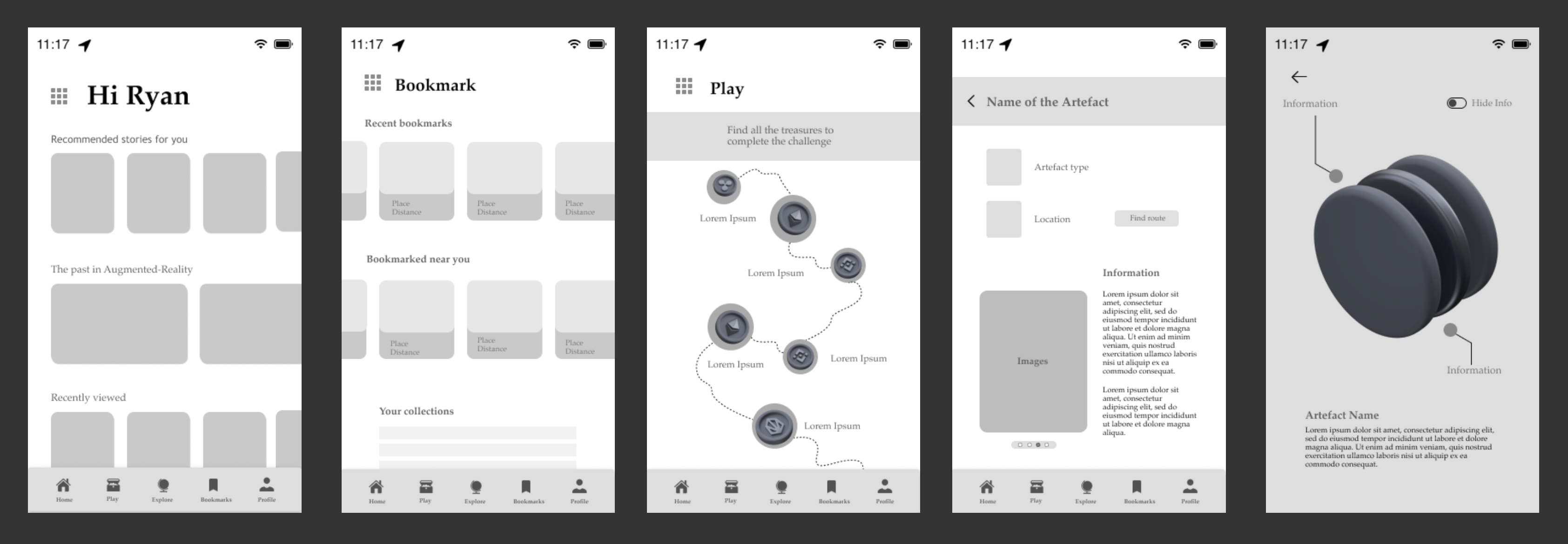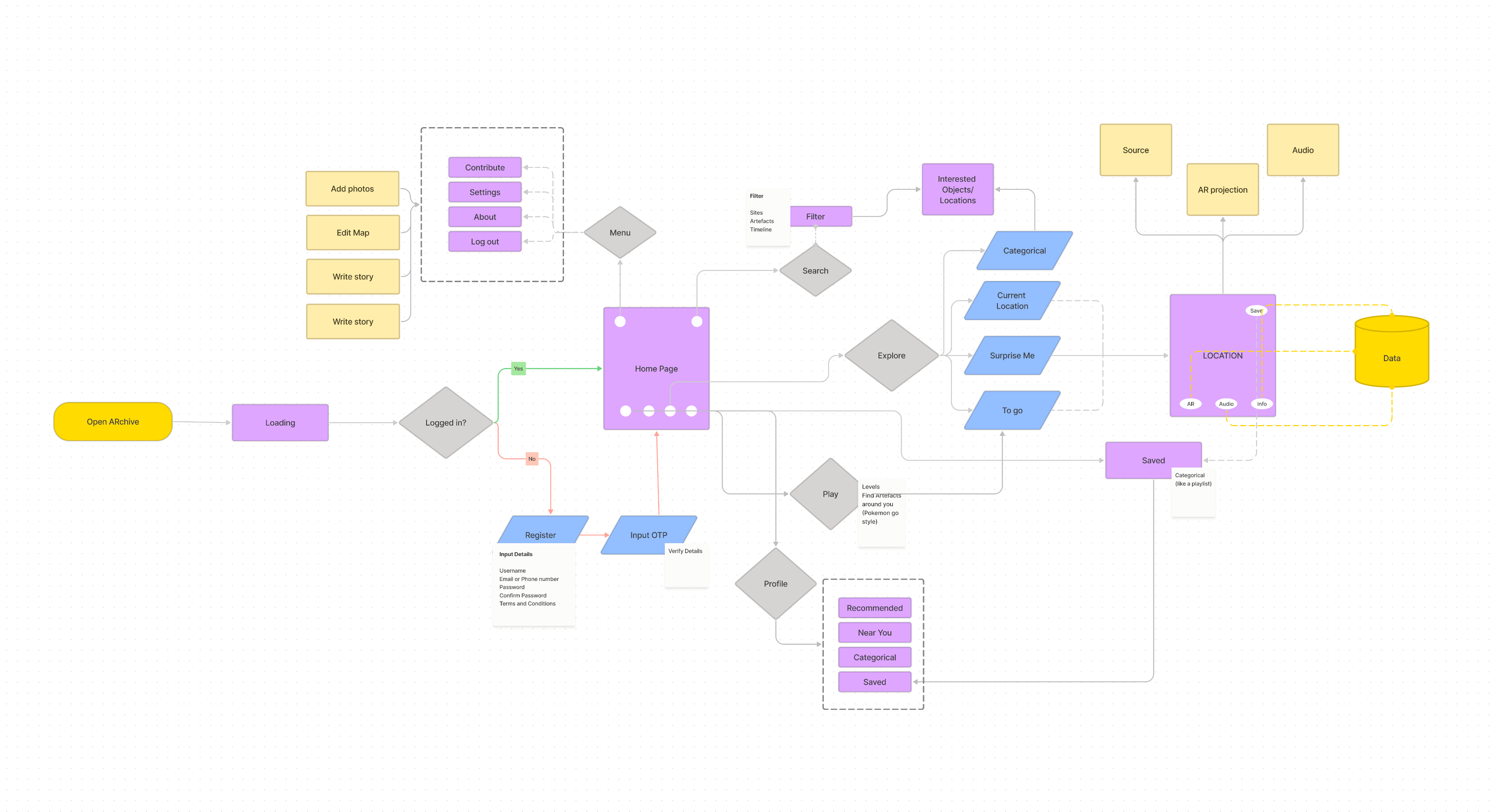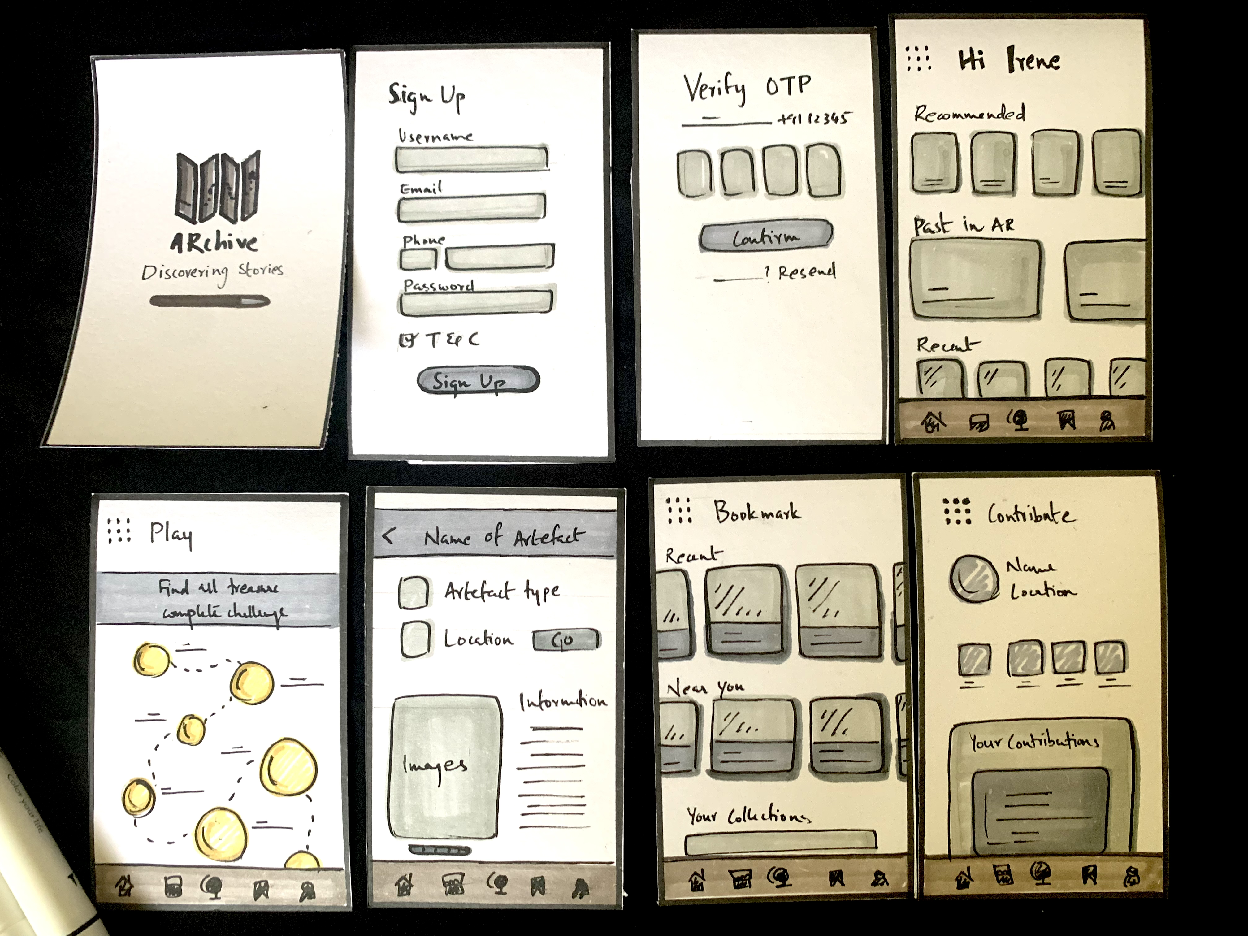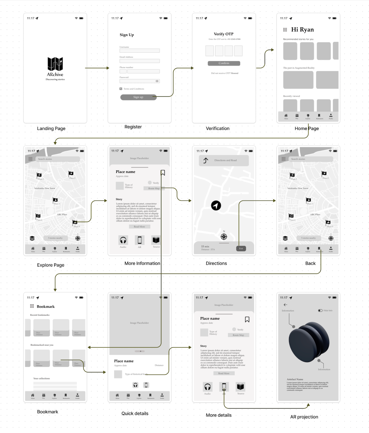 ARchive is a speculative project. Henceforth, mapping the user flow, user journey and creating wireframes was an integral part of the development process.
