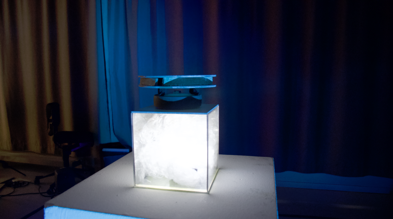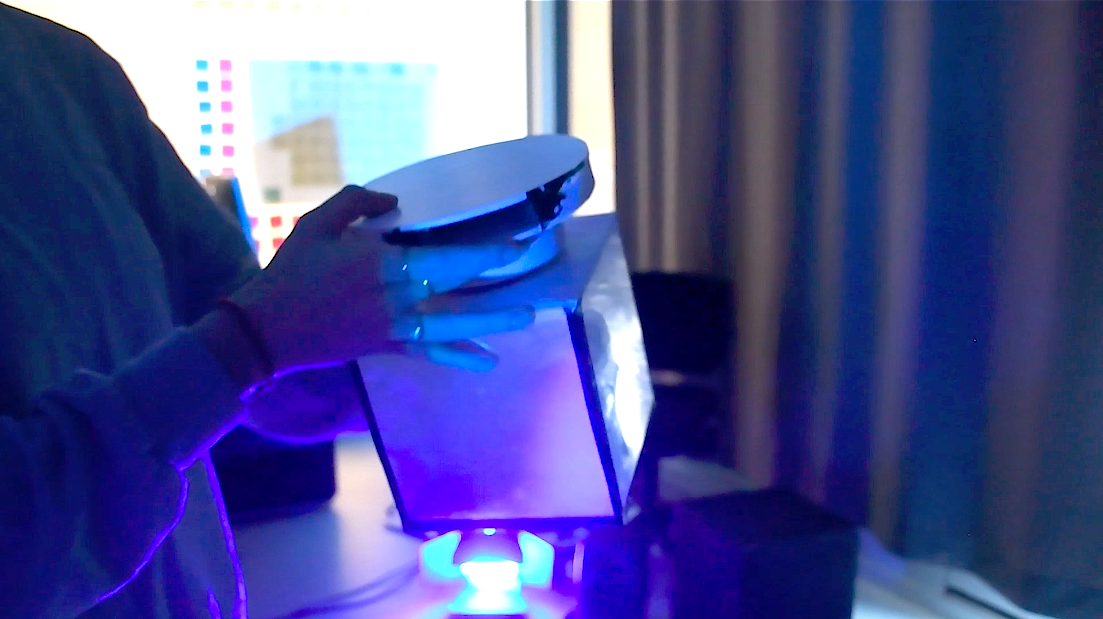 Dive into a sonic exploration of an ocean not only with soothing sounds, but also the space of noise pollution. Interact with the cube, which acts as a compass in the sea of chaos, offering a sonic experience, to get rid of disturbing sounds in the ocean.
